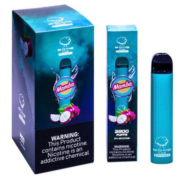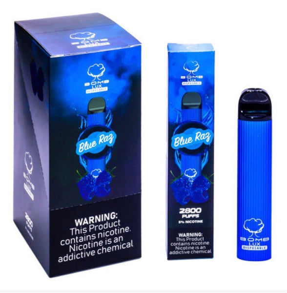 The Bomb LUX Disposable Vape is a vaping device that has been designed to be disposable, meaning once you've used all of the vape juice that comes pre-filled in the device or the battery is fully depleted, you can toss the device in the trash. The Bomb LUX Disposable Vape comes pre-filled, pre-charged, and requires no learning process. You simply take a puff, enjoy, and throw it away when you're finished.