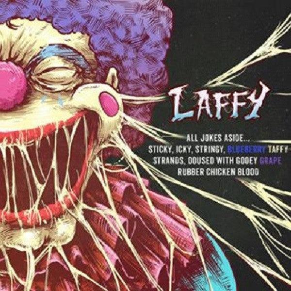 Laffy by Clown Premium Liquids -- All jokes aside, this is your favorite sticky, icky, stringy blueberry taffy strands, doused with gooey grape rubber chicken blood (yeah, apparently that's a thing -- don't ask too many questions, just vape this and thank us later).