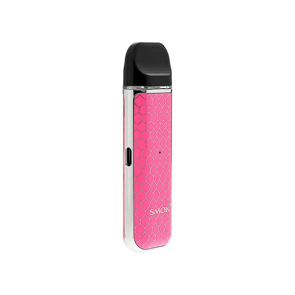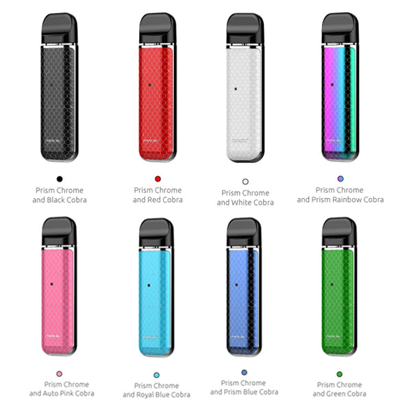 The SMOK NOVO Ultra Portable Pod Kit is launched as a luxuriously designed vape pod system, premiering with an exquisite cobra plated panels for a striking masterpiece with 450mAh rechargeable battery and 2mL refillable pods.