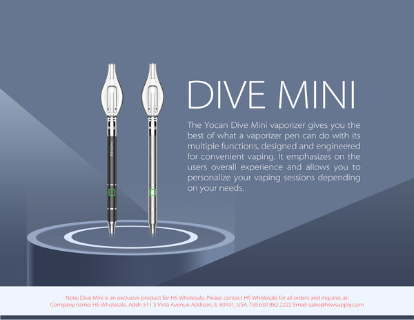 The Yocan Dive Mini is Yocan’s latest entry to the dab pen platform and is the perfect companion for consumers who are always on-the-go. Make the Yocan Dive Mini a part of your arsenal today!